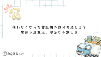 使わなくなった電話機の処分方法とは?費用や注意点、安全な手放し方「使わなくなった古い電話機、どうやって捨てたらいいんだろう?」「固定電話やコードレス電話、FAX複合機など、種類によって処分方法が違うの...